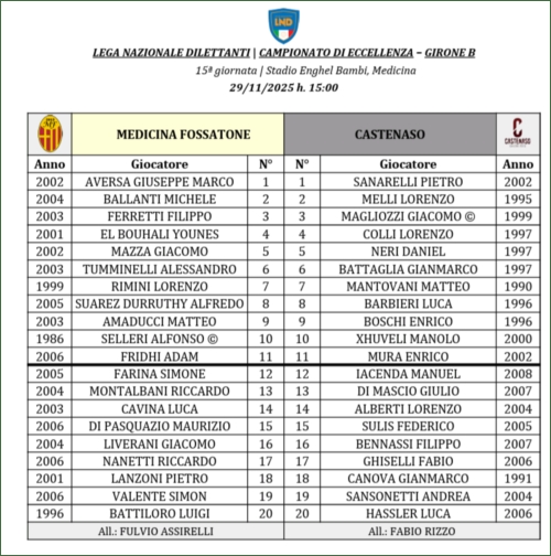 MEDICINA FOSSATONE-CASTENASO: 0-0
