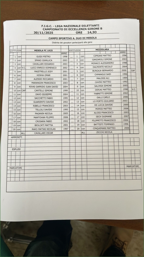 MESOLA-MEZZOLARA: 0-1
