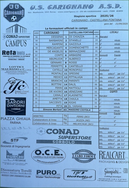 CARPANETO CHERO 1922-MONTECCHIO: 0-2