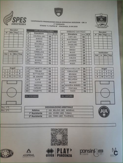 SPES BORGOTREBBIA-BIBBIANO SAN POLO: 2-1