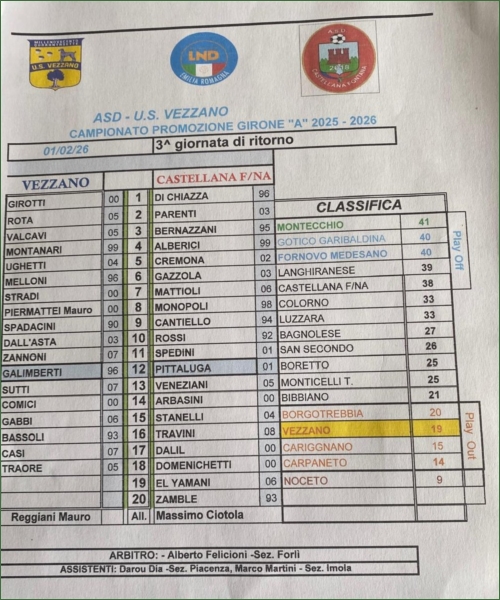 VEZZANO-CASTELLANA FONTANA: 0-0