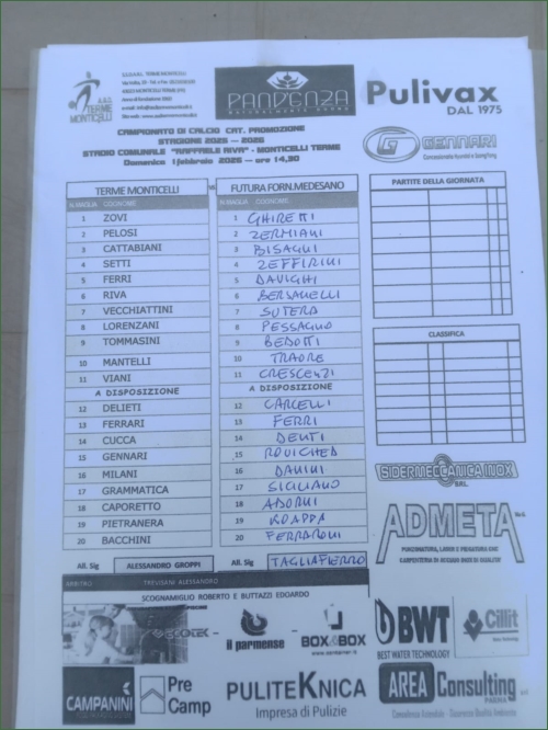 TERME MONTICELLI-FUTURA FORNOVO MEDESANO: 1-3