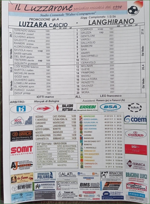 LUZZARA-LANGHIRANESE VALPARMA: 0-2