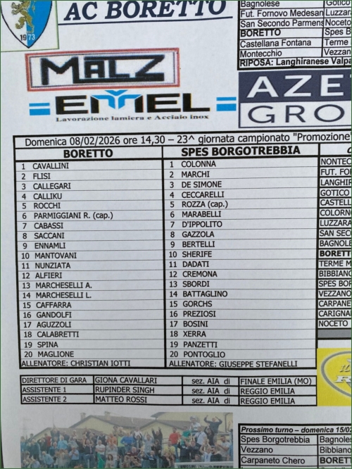 BORETTO-SPES BORGOTREBBIA: 2-1