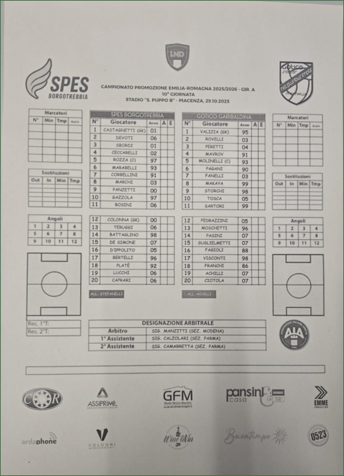 SPES BORGOTREBBIA-GOTICO GARIBALDINA: 1-2