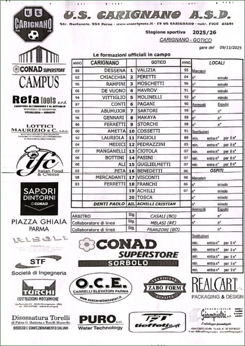 CARIGNANO-GOTICO GARIBALDINA: 0-4