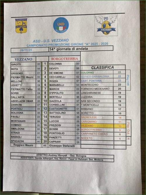 VEZZANO-SPES BORGOTREBBIA: 0-3