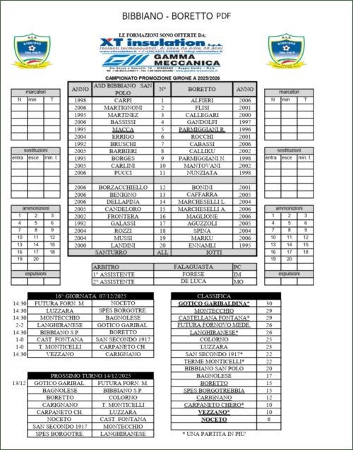 BIBBIANO SAN POLO-BORETTO: 1-2