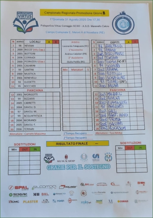 VIRTUS CORREGGIO-MARANELLO: 0-0
