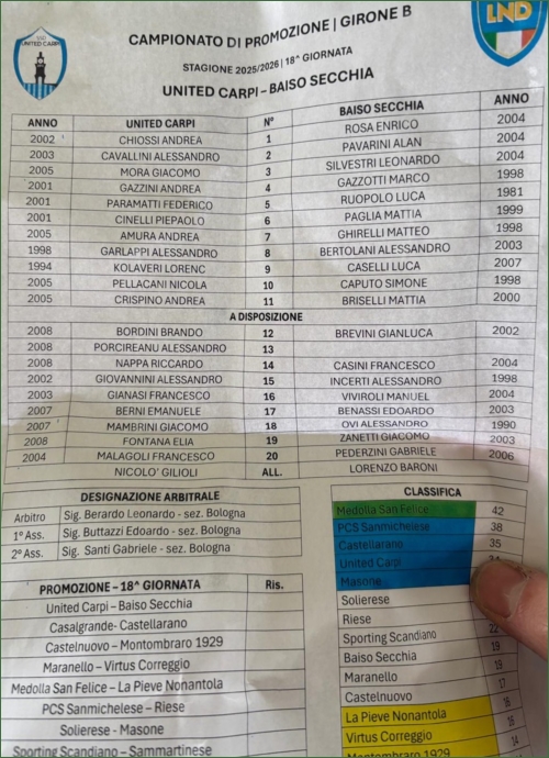 UNITED CARPI-BAISO SECCHIA: 2-0