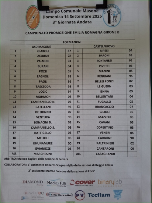 MASONE-CASTELNUOVO: 5-0