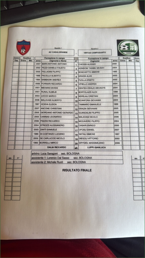 CASALGRANDE-VIRTUS CAMPOSANTO: 1-2
