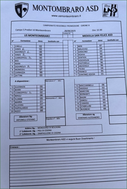 MONTOMBRARO 1929-MEDOLLA SAN FELICE: 1-2