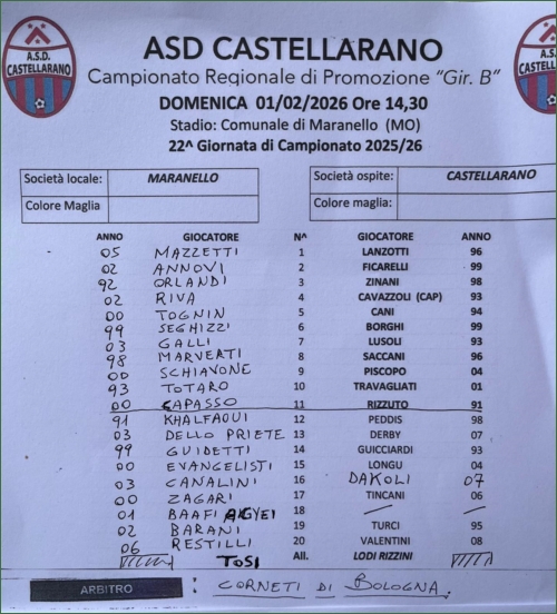 MARANELLO-CASTELLARANO: 1-2