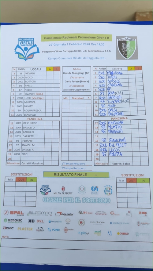 VIRTUS CORREGGIO-SAMMARTINESE: 0-0