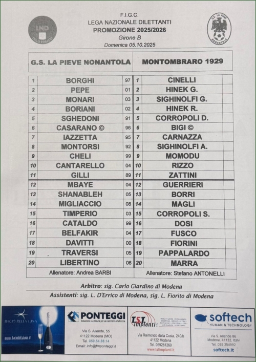 LA PIEVE NONANTOLA-MONTOMBRARO 1929: 1-1