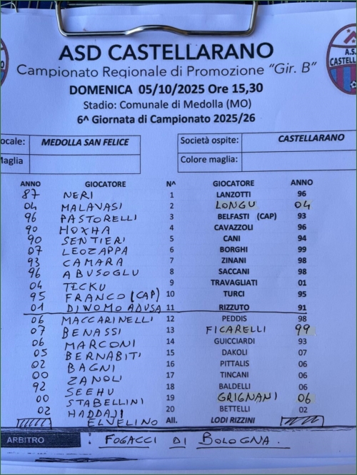 MEDOLLA SAN FELICE-CASTELLARANO: 2-0