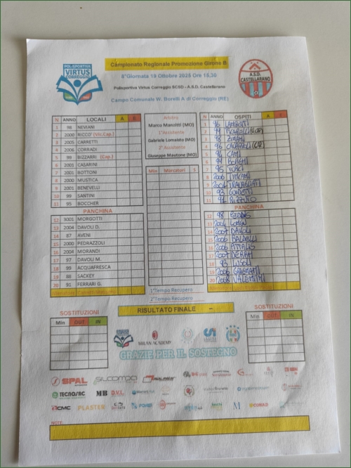 VIRTUS CORREGGIO-CASTELLARANO: 2-1