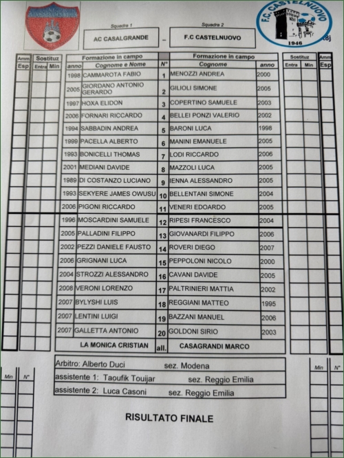 CASALGRANDE-CASTELNUOVO: 2-2
