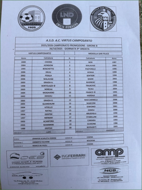 VIRTUS CAMPOSANTO-MEDOLLA SAN FELICE: 1-1