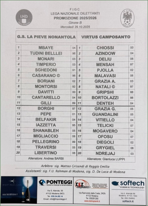LA PIEVE NONANTOLA-VIRTUS CAMPOSANTO: 0-0