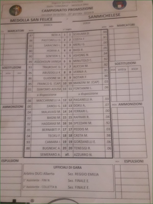 MEDOLLA SAN FELICE-PCS SANMICHELESE: 1-0