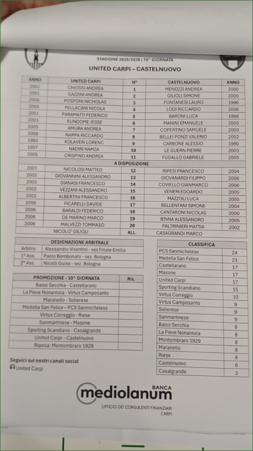 UNITED CARPI-CASTELNUOVO: 0-0