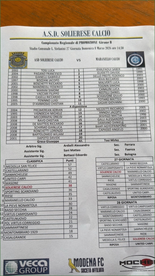SOLIERESE CALCIO-MARANELLO: 3-1