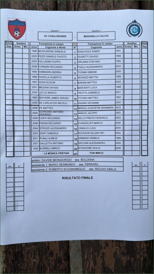 CASALGRANDE-MARANELLO: 0-1