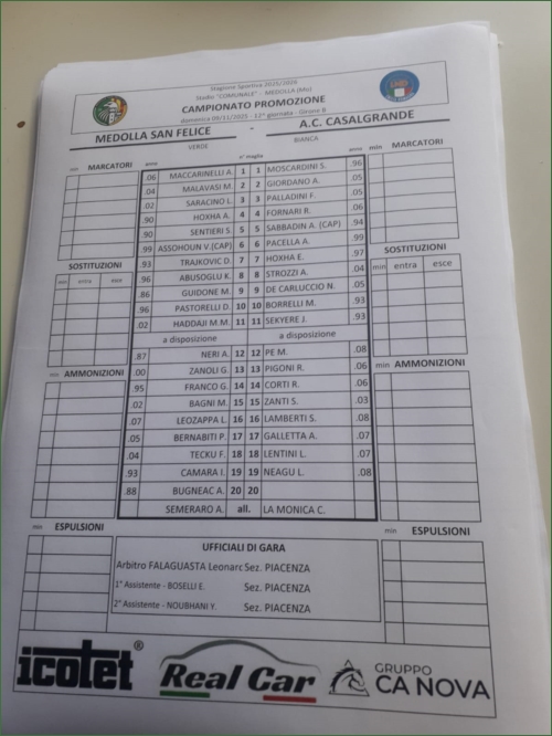 MEDOLLA SAN FELICE-CASALGRANDE: 2-0