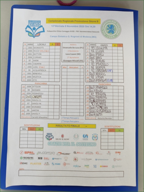 VIRTUS CORREGGIO-PCS SANMICHELESE: 2-4