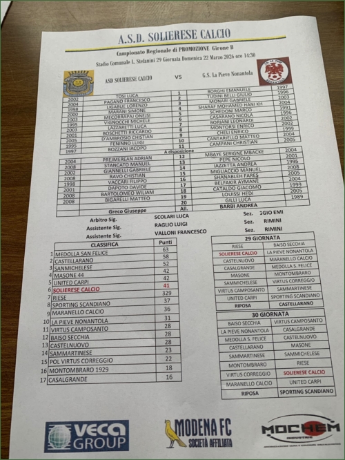 SOLIERESE CALCIO-LA PIEVE NONANTOLA: 1-1