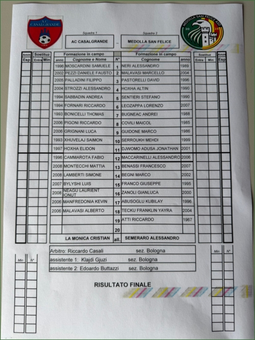 CASALGRANDE-MEDOLLA SAN FELICE: 0-3