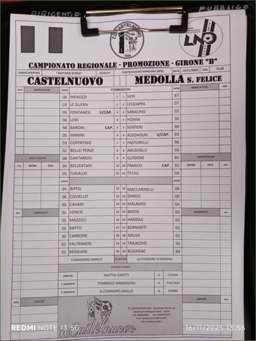 CASTELNUOVO-MEDOLLA SAN FELICE: 1-2