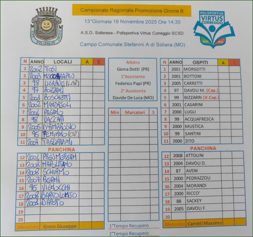 SOLIERESE CALCIO-VIRTUS CORREGGIO: 1-0