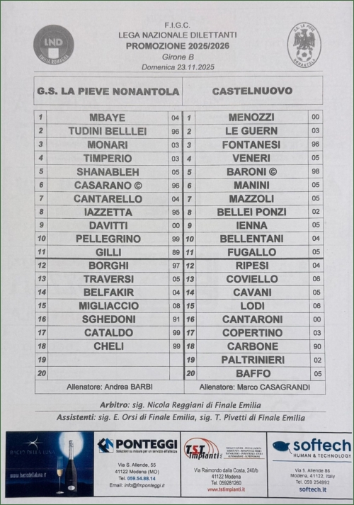LA PIEVE NONANTOLA-CASTELNUOVO: 2-2