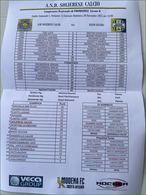 SOLIERESE CALCIO-BAISO SECCHIA: 1-0