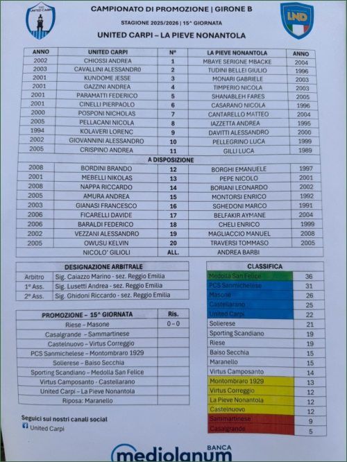 UNITED CARPI-LA PIEVE NONANTOLA: 2-1