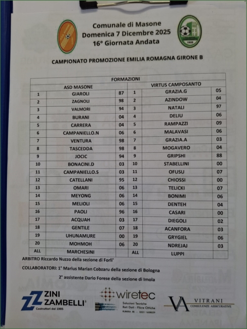 MASONE-VIRTUS CAMPOSANTO: 2-1