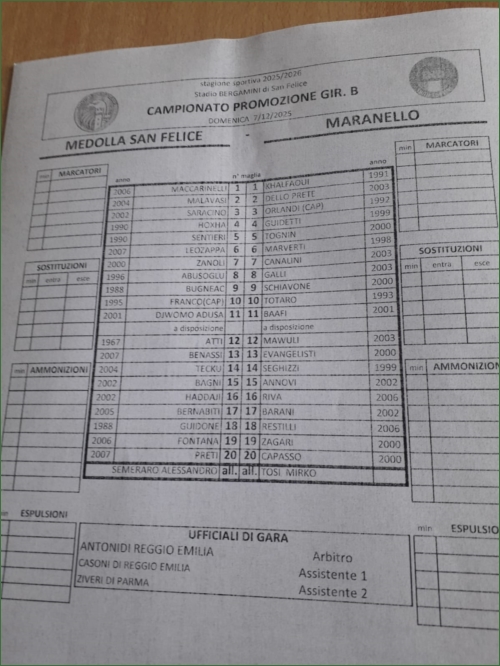 MEDOLLA SAN FELICE-MARANELLO: 4-1