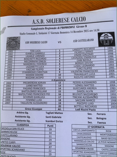 SOLIERESE CALCIO-CASTELLARANO: 0-0
