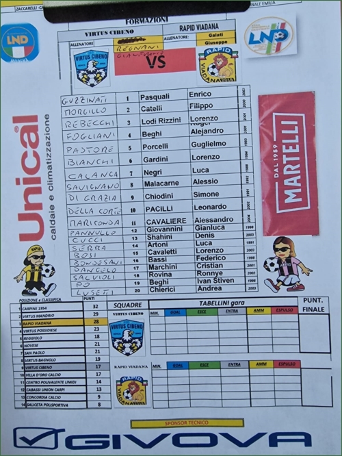 VIRTUS CIBENO-RAPID VIADANA: 0-1
