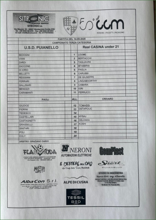 PUIANELLO-REAL CASINA UNDER 21: 8-0