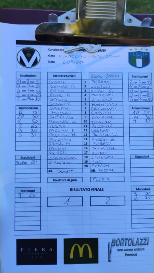 MONTECAVOLO-REAL CASINA: 1-2