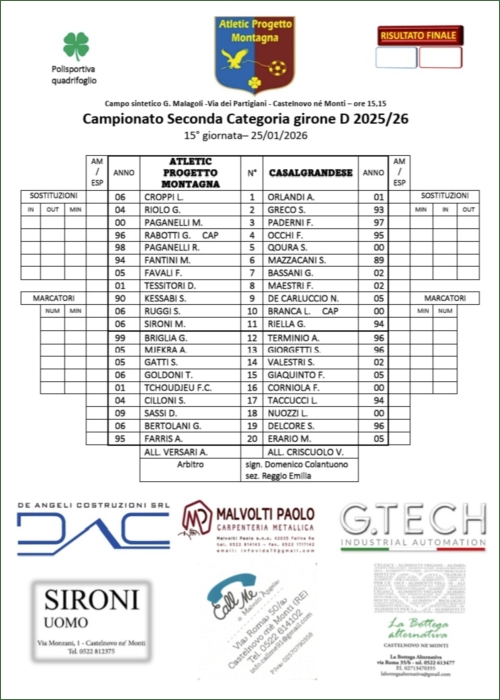 ATLETIC PROGETTO MONTAGNA-CASALGRANDESE: 2-1