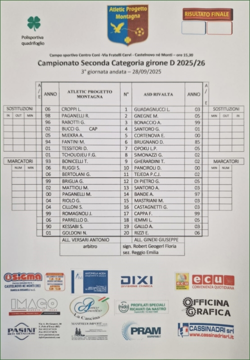 ATLETIC PROGETTO MONTAGNA-RIVALTA: 3-0