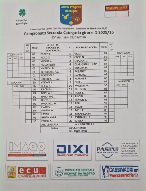 ATLETIC PROGETTO MONTAGNA-BARCACCIA: 5-1