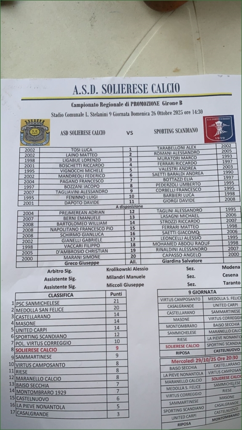 SOLIERESE CALCIO-SPORTING SCANDIANO: 0-1