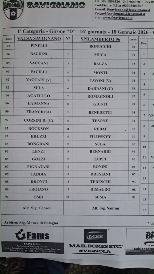 FC VALSA SAVIGNANO-SPILAMBERTO: 0-2