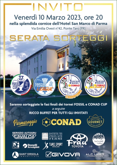 - QUESTA SERA I SORTEGGI DELLA FOSSIL CUP ALL'HOTEL SAN MARCO DI PARMA